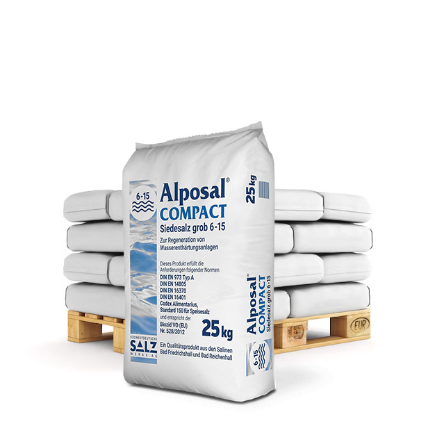 Alposal® Compact je speciální zlomková regenerační sůl vyrobená za účelem tvorby solanky pro regeneraci iontoměničů v domácích i průmyslových úpravnách vody a zařízeních pro změkčování vody.