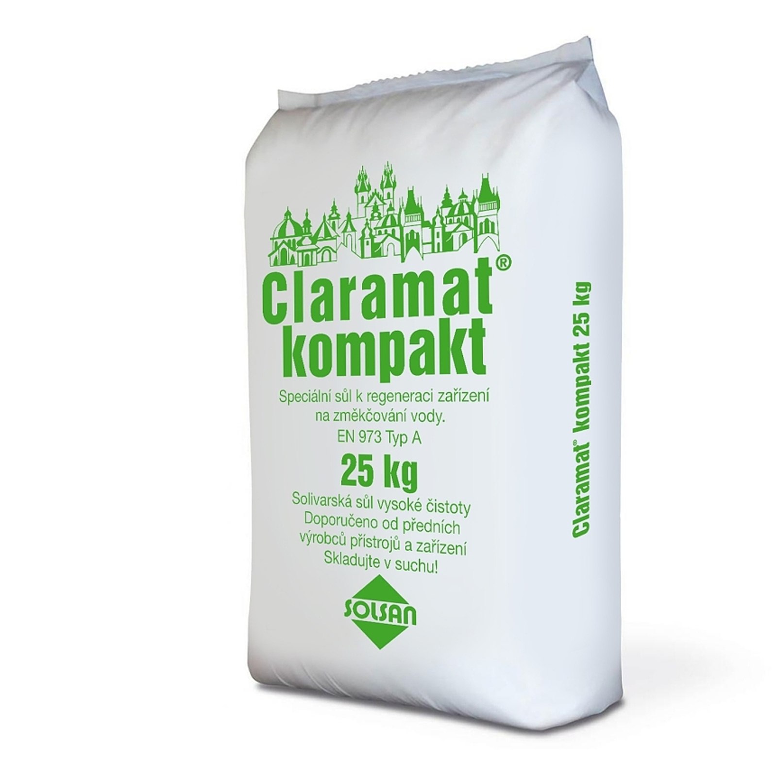 Claramat kompakt je speciální zlomková regenerační sůl vyrobená za účelem tvorby solanky pro regeneraci iontoměničů v domácích i průmyslových úpravnách vody a zařízeních pro změkčování vody.