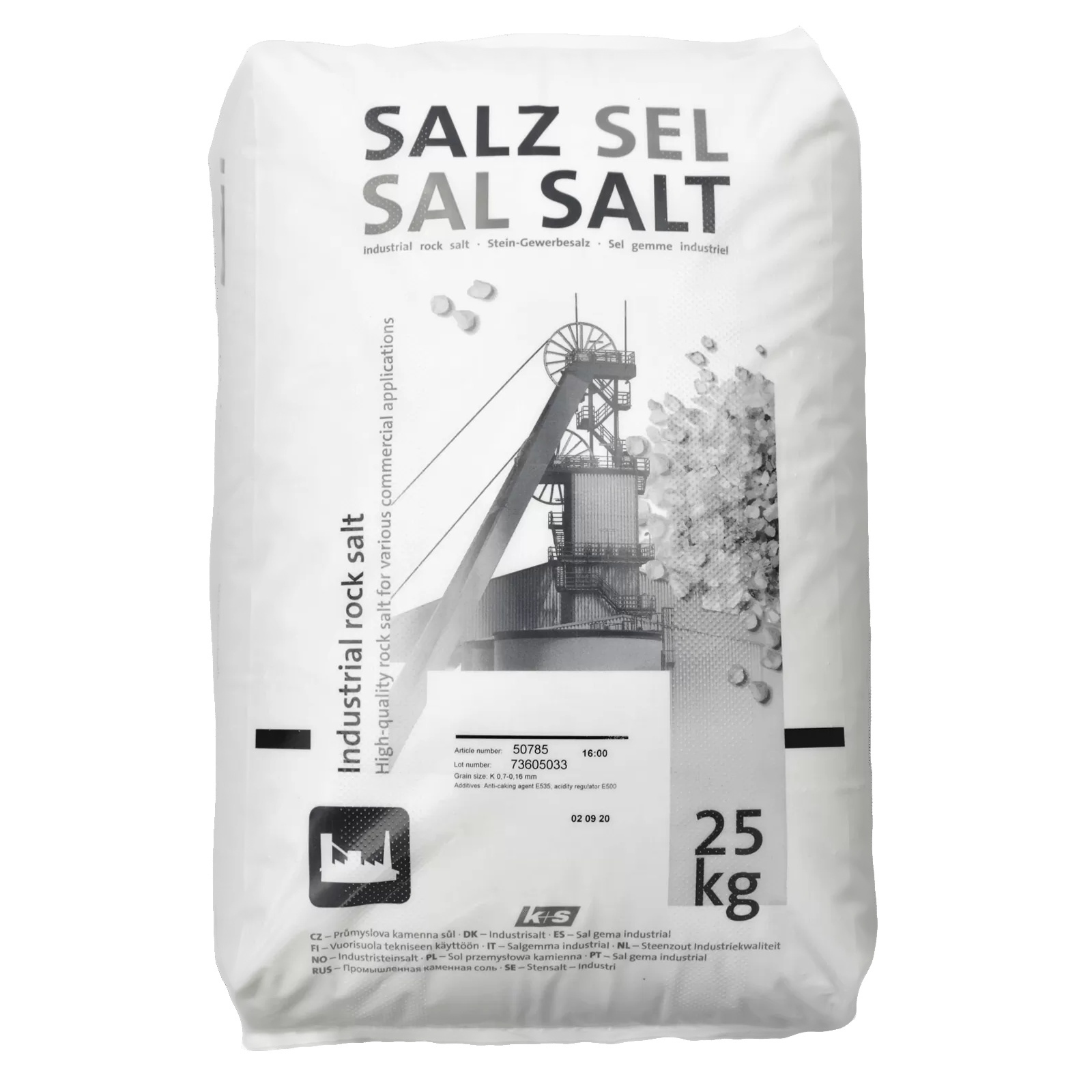 Průmyslová sůl kamenná se používá jako surovina pro různé procesy v průmyslových a komerčních aplikacích. Průmyslová kamenná sůl je přírodní produkt získaný těžbou, který vznikl asi před 250 miliony let vysycháním pravěkých moří v Německu.