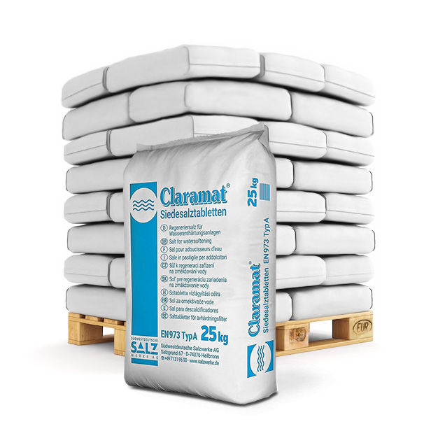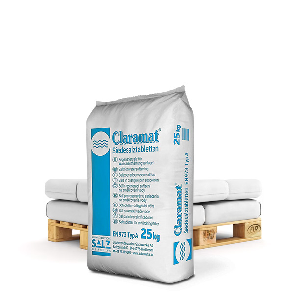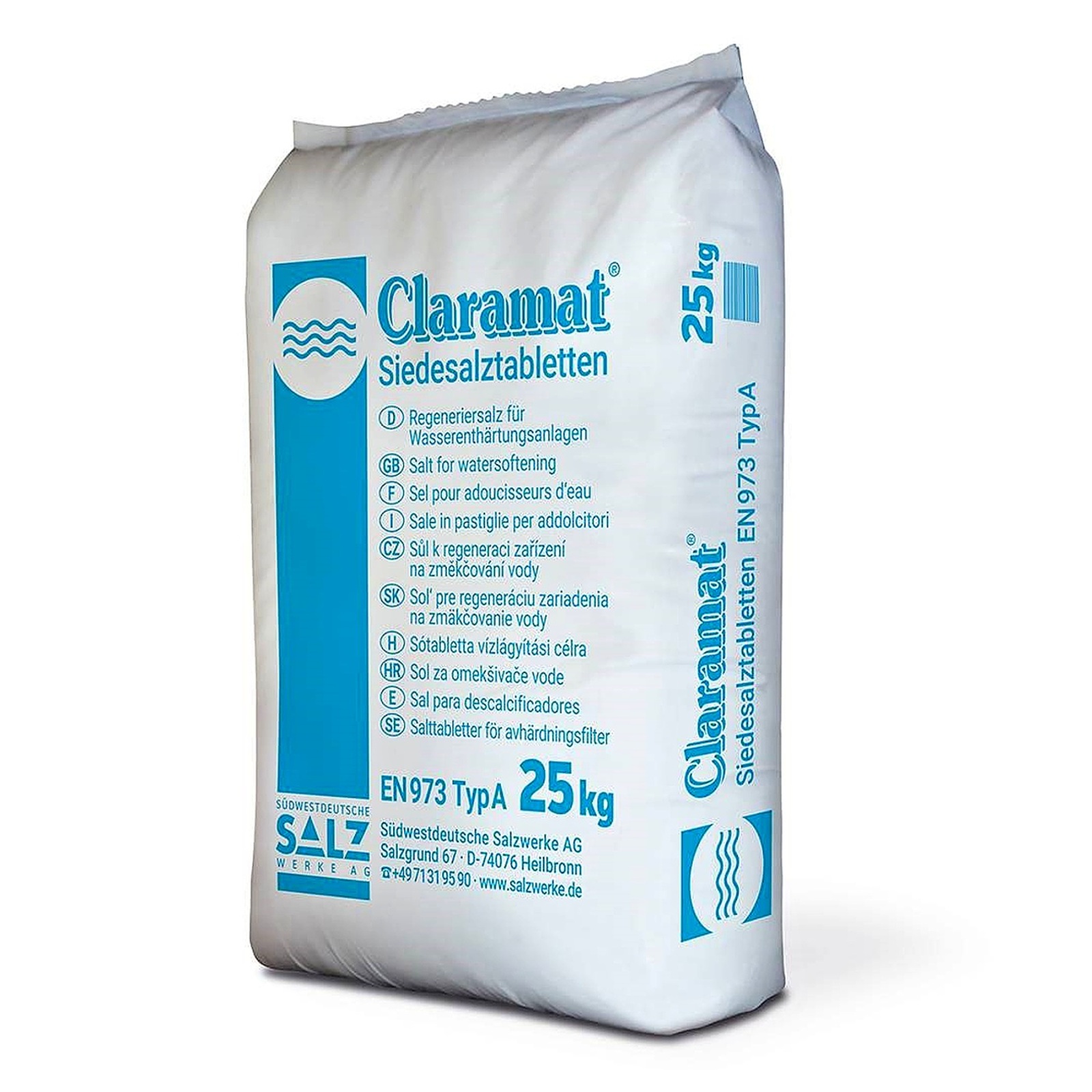 Používá se pro změkčování vody, dezinfekci vody a výrobu solanky v potravinářském průmyslu. Claramat Tabletten se vyznačuje nejvyšší čistotou, vysokým výkonem a dlouhou životností změkčovadla. Optimální postupná rozpustnost bez žádných zbytků. Oproti sypké soli nedochází k tzv. klenbování v solankové nádrži.